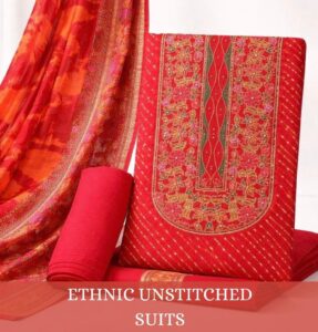 Look and elevate the celebration with our ethnic unstitched salwar suit style, chasing the desi vibe in fusion fashion. Ethnic wear designs that bring traditions alive and flaunt your style with bursts of colors and prints.